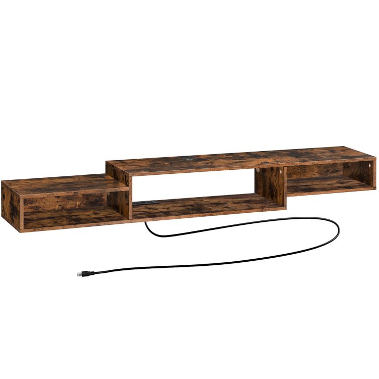 porta tv galleggiante, 71" scaffale televisivo galleggiante con outlet di alimentazione, Centro di intrattenimento per la camera da letto per il salotto del soggiorno, marrone rustico