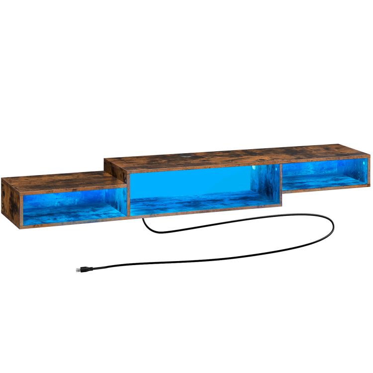 supporto per supporto TV galleggiante supporto TV montato a parete con outlet di alimentazione, 71" scaffale televisivo galleggiante con LED, Scaffale di intrattenimento con console mediatico con spazio per la camera da letto del soggiorno, marrone rustico