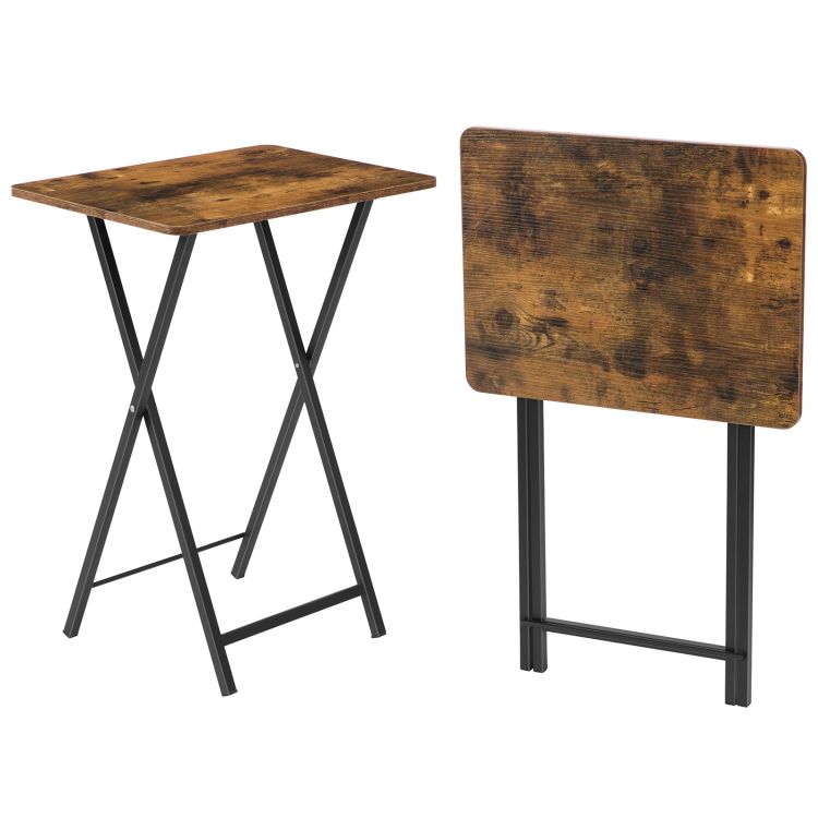 vassoio televisivo set di 2, Tabelle TV pieghevoli, snack tavoli per mangiare al divano, Tavolo per laptop industriale per piccolo spazio, cornice in metallo stabile, facile assemblaggio e conservazione, marrone rustico