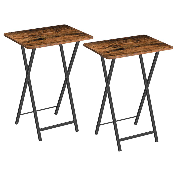 Set di vassoi TV portatili di 2, tavoli da pranzo TV pieghevole, tavoli da vassoio per piccoli spazio, Paesaggi da pranzo per mangiare al divano e al letto, Assemblaggio facile, risparmio di spazio, rustic brown and black bf20bzp201