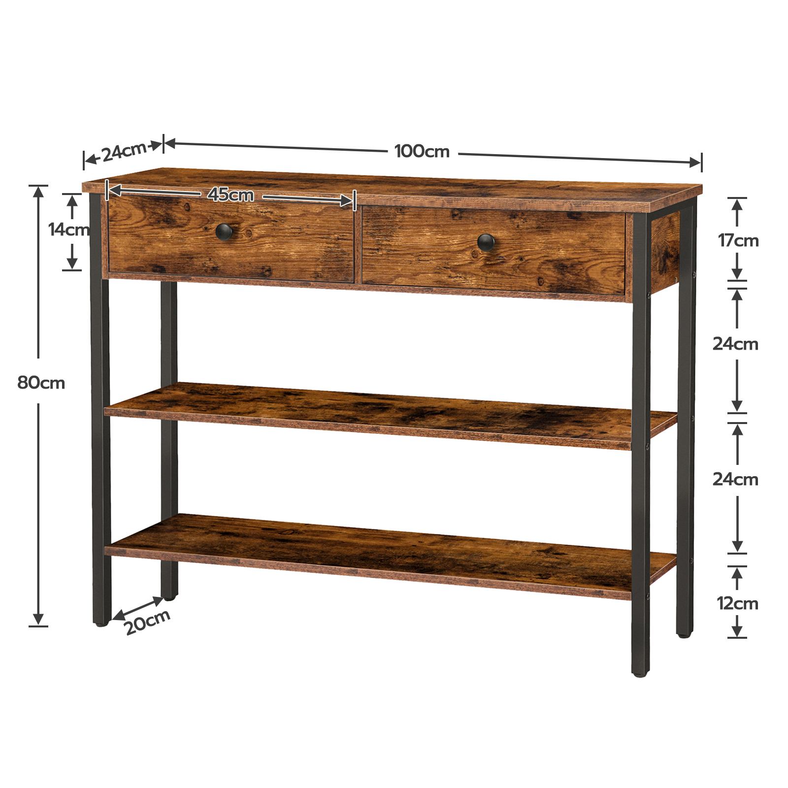 Exceptional Stability: This console table has an overall dimension of 100 X 24 X 80 cm. Constructed from high-quality chipboard and a robust metal frame, it features outstanding structural stability and excellent load-bearing capacity, with the top surface supporting up to 25 kg and the lower shelf up to 12 kg.