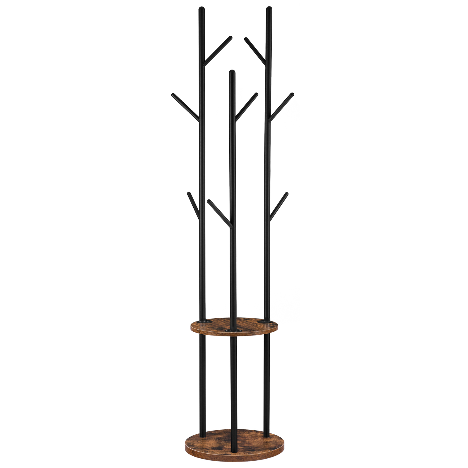 Appendiabiti industriale autoportante, 8-Gancio Appendiabiti con 2 Ripiani portaoggetti rotondi, Adatto per ingresso, Camera da letto e ufficio