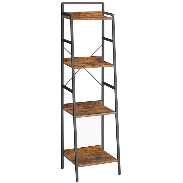 4-scaffale della scala di livello, scaffale stretto, libreria industriale, skinny bookshelf for small spaces, corner storage shelf for home office, soggiorno, rustic brown and black bf34sj01