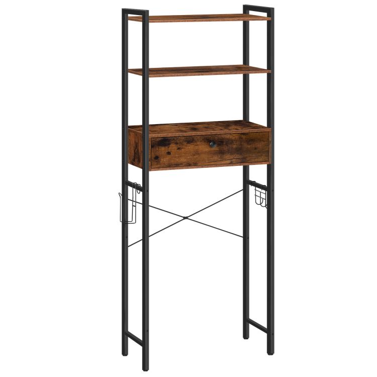 sopra il ripostiglio del WC, 3 tier bathroom organizer shelf with drawers, freestanding bathroom space saver with toilet paper holder and hook, risparmiare spazio, rustic brown bf45ts01