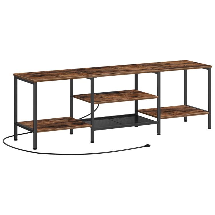 TV sta con punti vendita 75 pollici, TABELLA DELLA CONSOLE TV con cabinet di ripiani aperti, Centro di intrattenimento dei media industriali per la camera da letto del soggiorno, rustico marrone e nero
