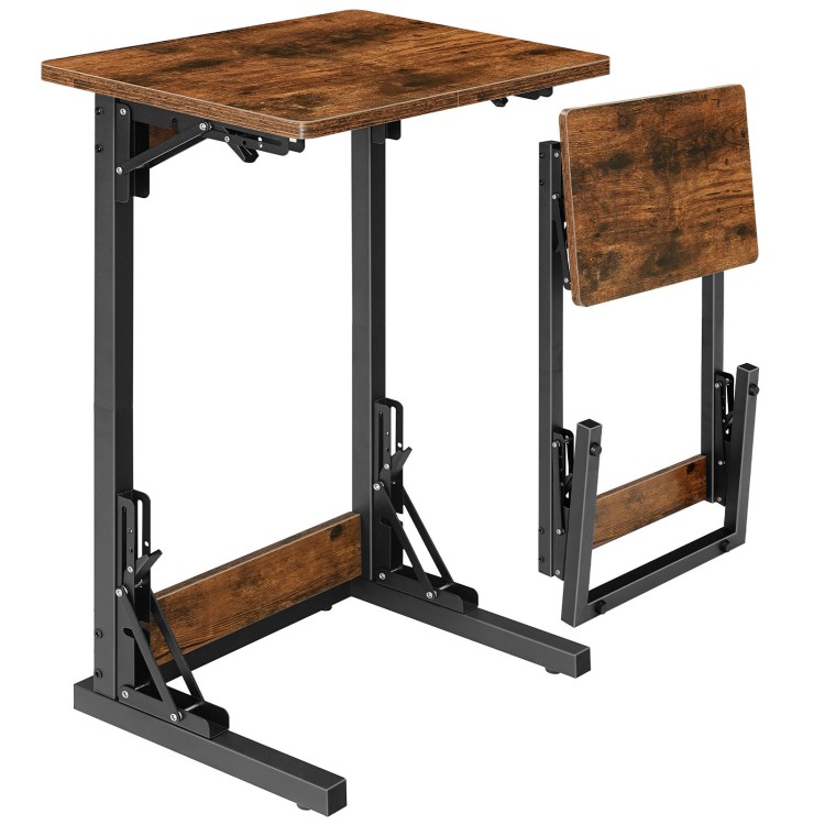 Tavolo da fine a forma di C pieghevole, Tavolino pieghevole per TV per mangiare, Tavolino scorrevole sotto il divano per piccoli spazi, Tavolino da divano portatile per soggiorno, Camera da letto, Rustic Brown and Black BF65SF01