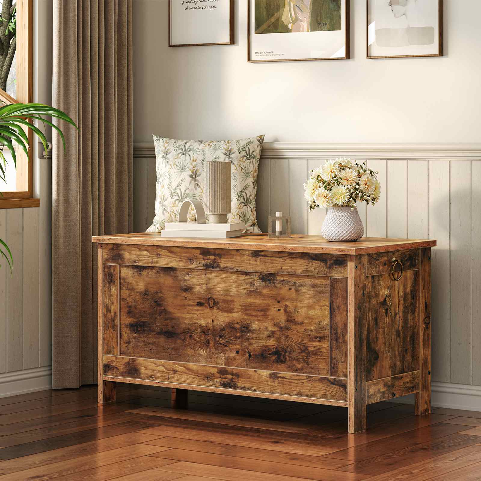 Cassetta portaoggetti retrò in legno con cerniera di sicurezza, Panca portaoggetti multifunzionale per l'ingresso & Organizzatore giocattolo, Montaggio semplice, Marrone rustico