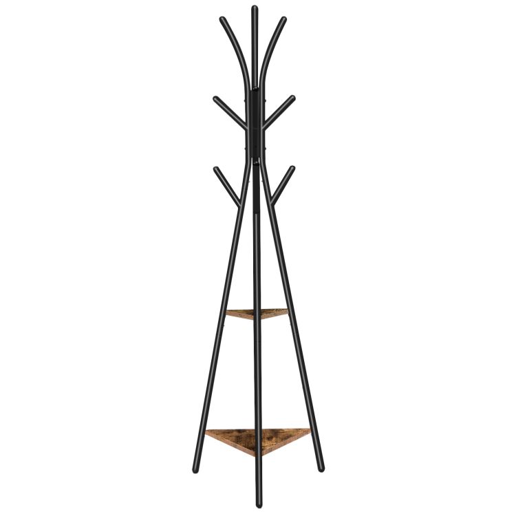 - life assistant: the coat rack stand is a seamless transition at the end of the day. with tripod structure and 9 ganci arrotondati, risulta essere un comodo pezzo vicino alla porta per appendere comodamente i cappelli, giacche, borse e sciarpe. and the two shelves are an added plus to offer platforms for displaying decorations, rendere lo spazio accogliente