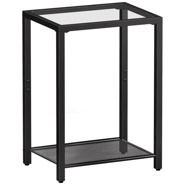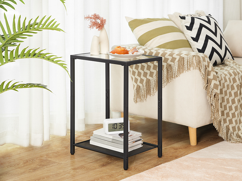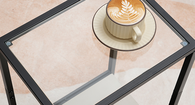 black glass side table, 2-tavolino di livello, comodino per spazi ristretti, tavolino in vetro temperato, Modern Metal Frame, per ufficio, camera da letto, soggiorno, studio, nero