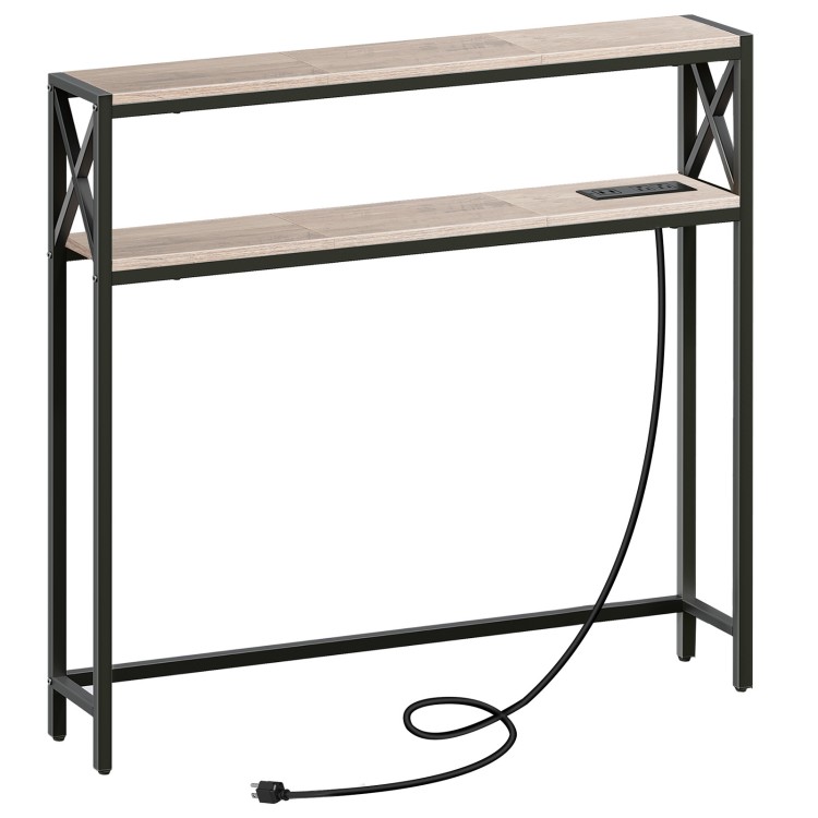 Tavolino da divano stretto con stazione di ricarica, 39.4" Lx 5.9" Lx 39.4" H, Dietro il tavolino del divano, Consolle Skinny con presa, Tavolo da ingresso per soggiorno, Greige