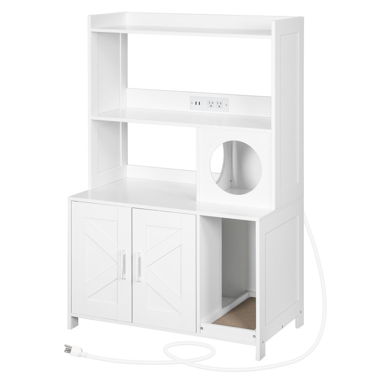 recinto per lettiera per gatti con 2 scaffali di stoccaggio, 46.5" H nascosto mobili per lettiera per gatti con stazione di ricarica, armadio per il bagno di gatto in legno con graffio, Casa per gatti interni, white cwwt89e01n1