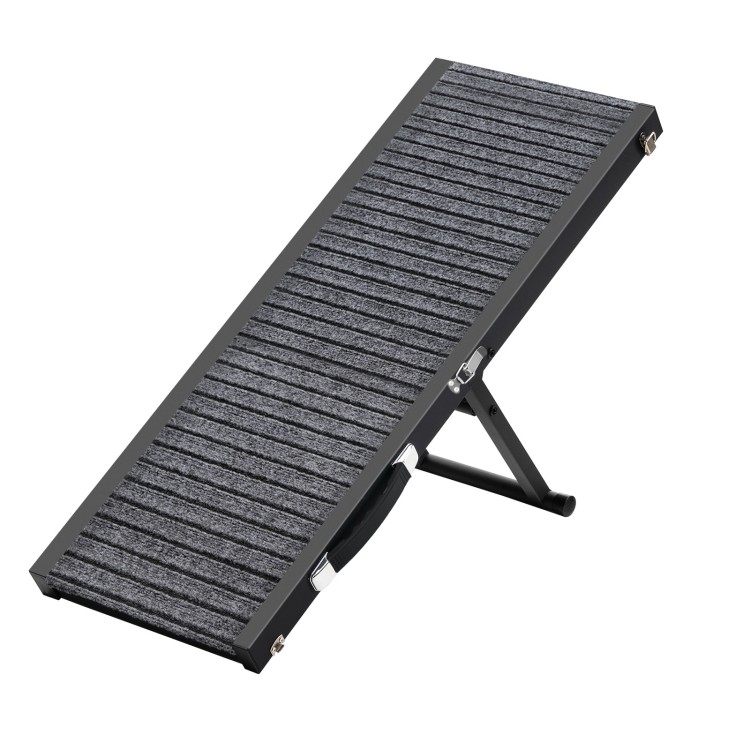 - design pieghevole, portable and space saving: the adjustable pet ramp can be easily stored in the car trunk, sotto il divano o il letto senza occupare spazio aggiuntivo. its folding size is 16.1"l x 11.8"W x 3.4"H. with the side handle, it can follow you wherever you go