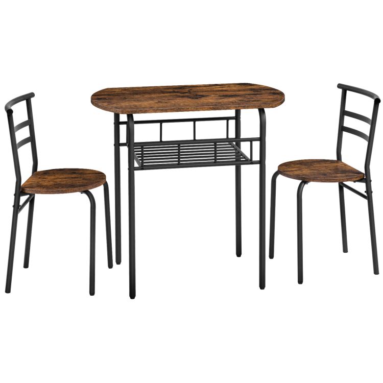3-pezzo set da tavolo da pranzo a forma di ovale, Pub Bar Set con 2 sedie, tavolo da nidificazione da cucina set, Assemblaggio facile, risparmio di spazio, per piccolo spazio, pranzo & soggiorno, marrone rustico