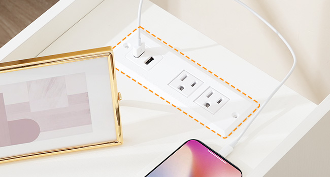 - Tavolino stretto con comoda presa: Il tavolino moderno ha una presa con 2 punti vendita e 2 Porte USB, soddisfare facilmente le diverse esigenze di ricarica. La spaziatura progettata scientificamente consente inoltre l'uso simultaneo di più spine per alimentare i dispositivi