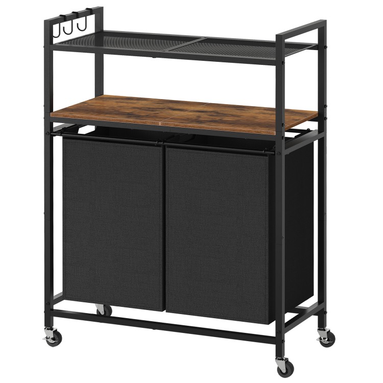 Cesto della biancheria, Portabiancheria con ripiano, Cesto per la biancheria con 2 Borse estraibili e rimovibili, Organizzazione e stoccaggio della lavanderia per il bagno, Lavanderia, Rustico marrone e nero