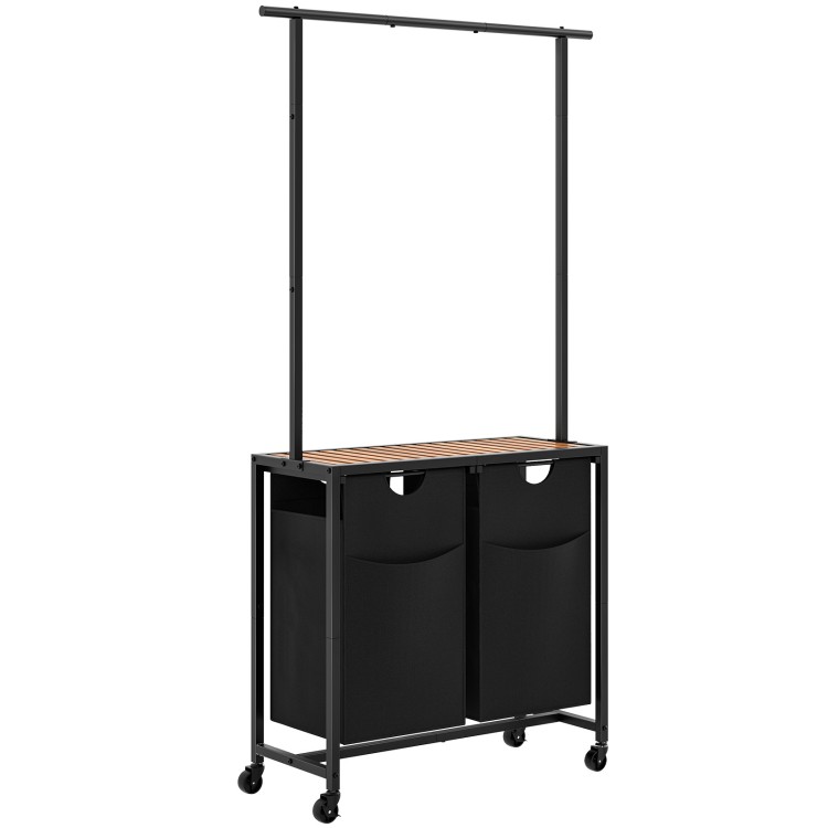 - rolling laundry sorter with hanging bar: equipped with four 360-degree rotating wheels, the black laundry basket with wheels slides smoothly, and you can push two compartment laundry hamper wheels easily anywhere and anytime