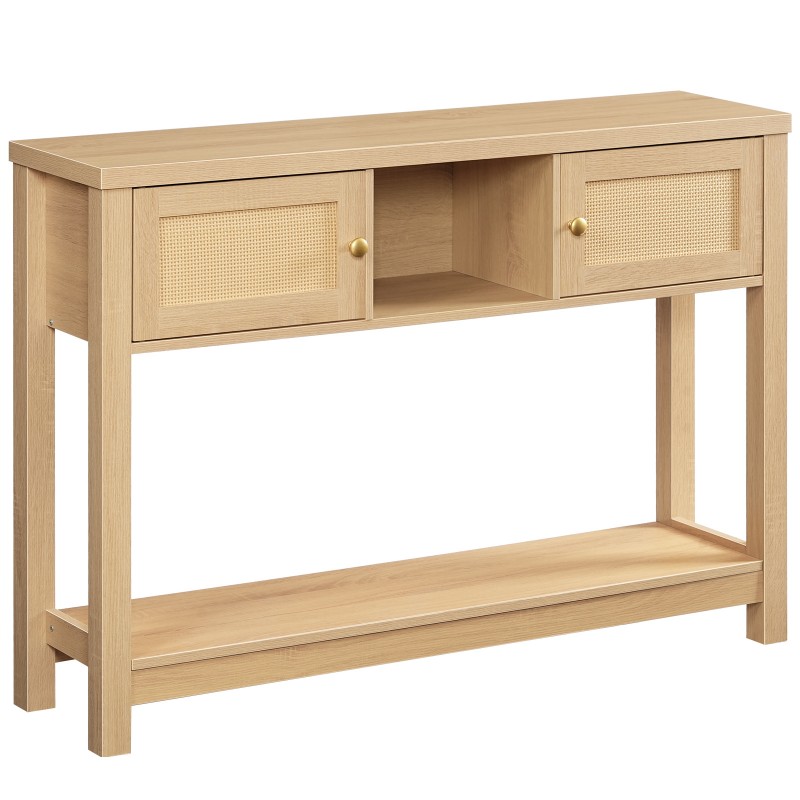 Tabella della console a forma di rattan naturale, 120Tabella di ingresso CM con archiviazione, Tavolino stretto dietro il divano, Tavolo dei corridoi con scaffale aperto e 2 Armadietti, Decorazione tessuta, per Foyer