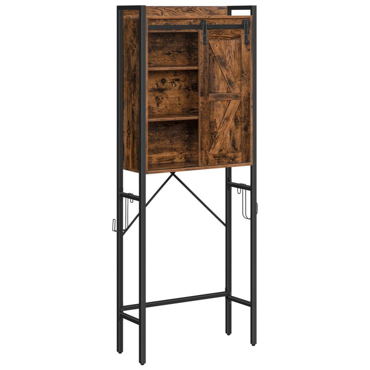 sopra il mobiletto del WC, 4-Risparmio spaziale del bagno di livello con porta scorrevole e ripiani regolabili, Organizzatore del bagno indipendente con 2 ganci, marrone rustico