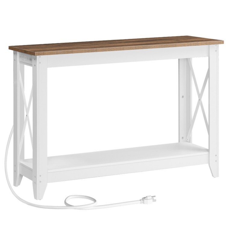 47.2" Tavolo consolle Tavolo da ingresso Tavolino da divano stretto con prese & Porte USB Corridoio Soggiorno Rovere Marrone & Bianco antico