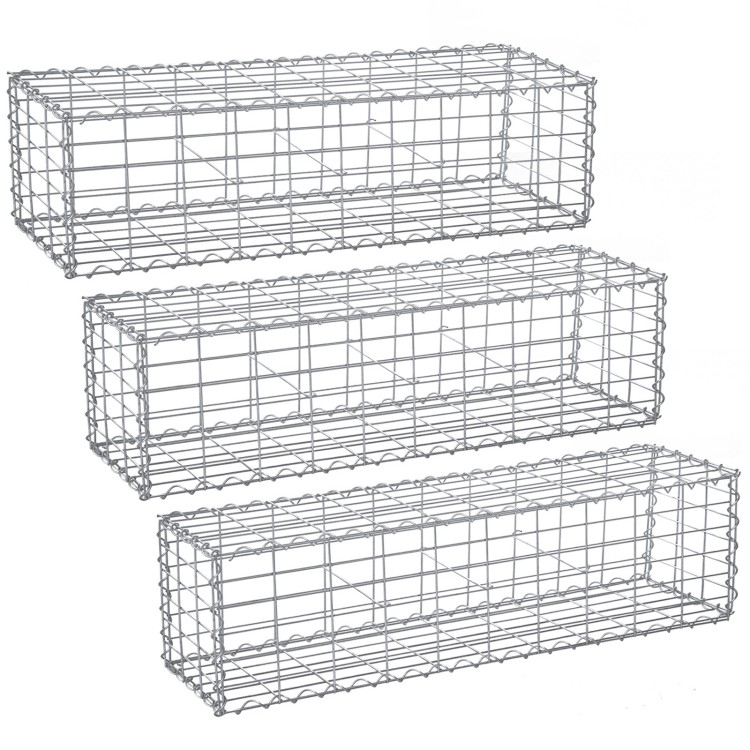 Gabion Set of 3 Cesti di pietra, 100 X 30 X 30 cm, Maglia 10 X 5 cm, Decorazione da giardino in acciaio zincato, Argento con distanziatori