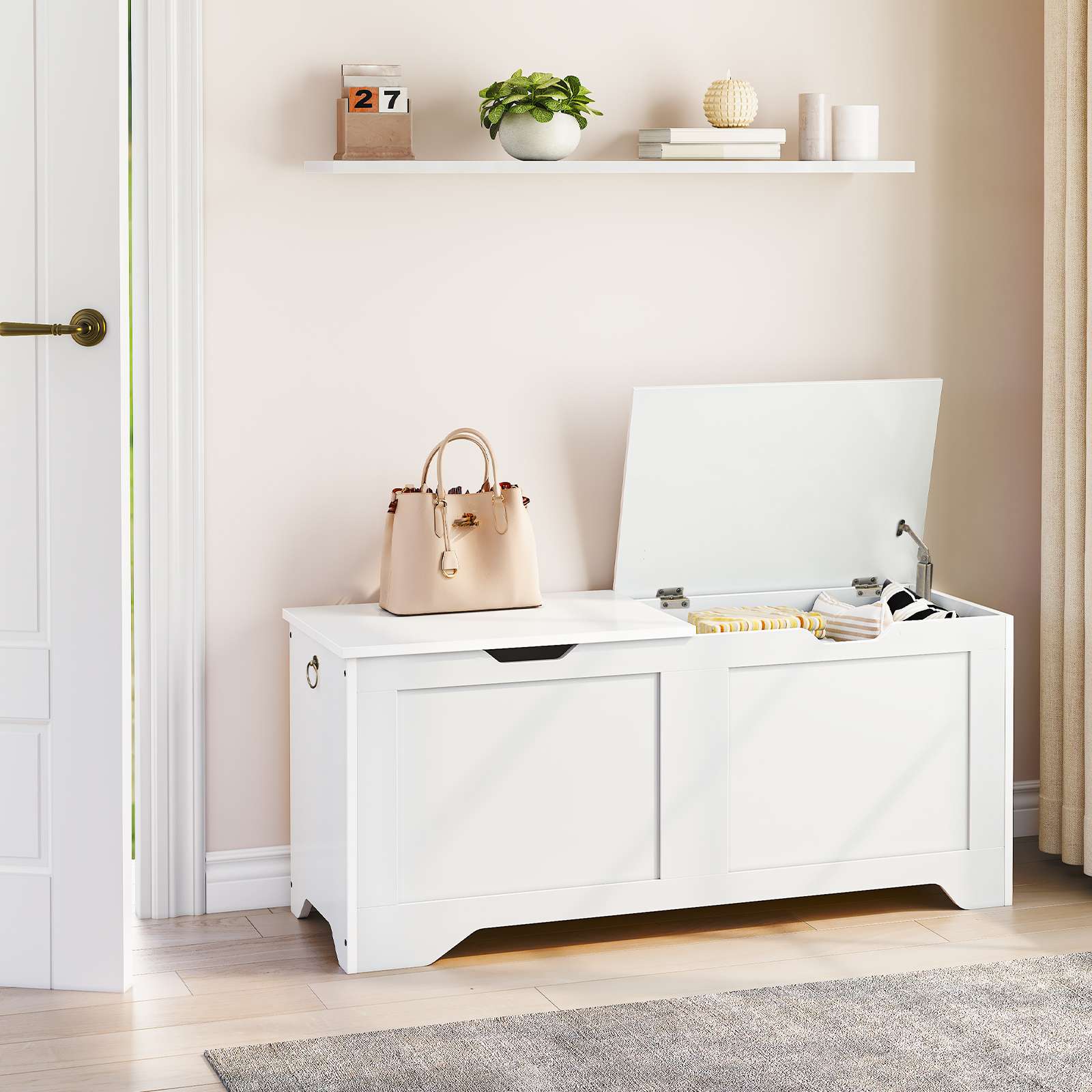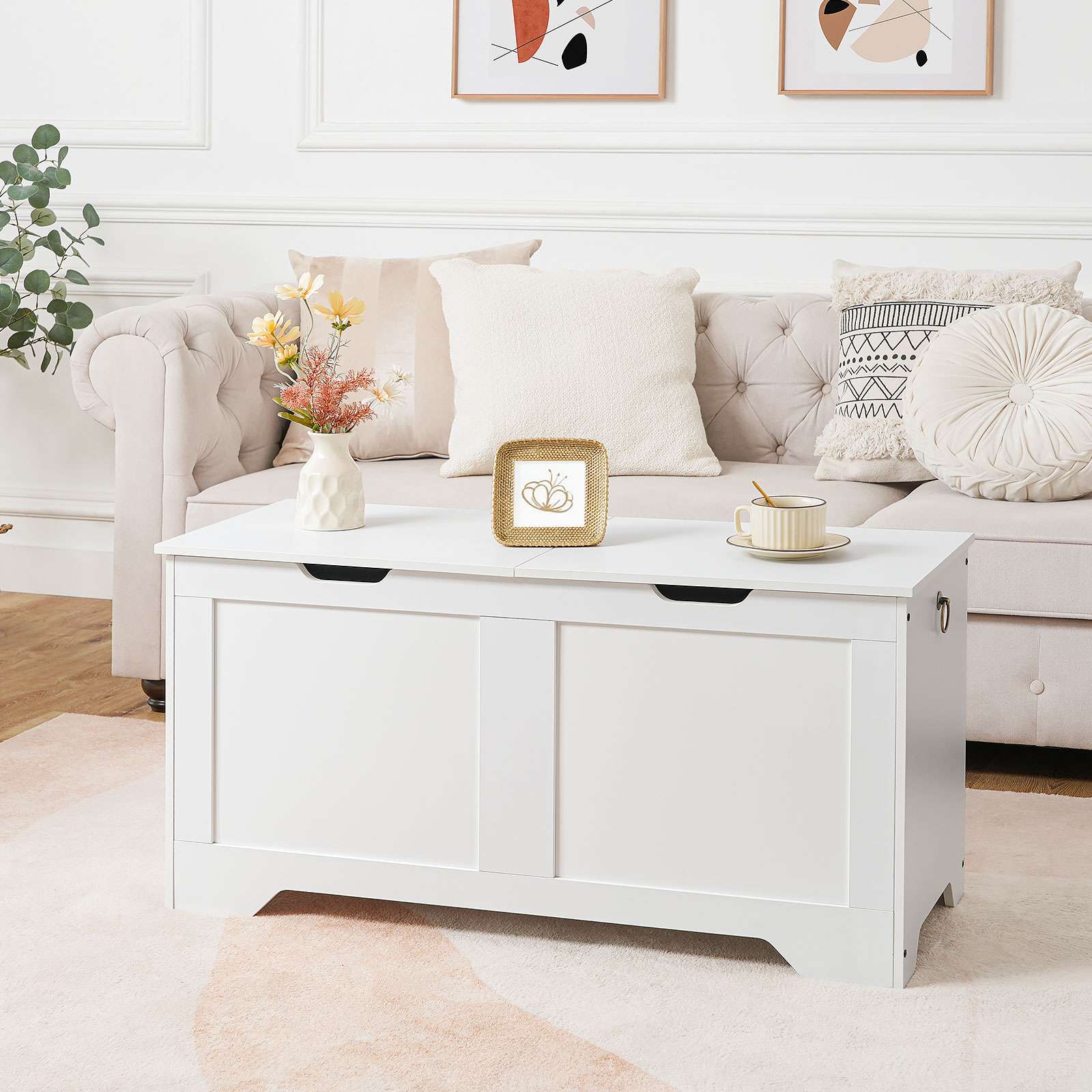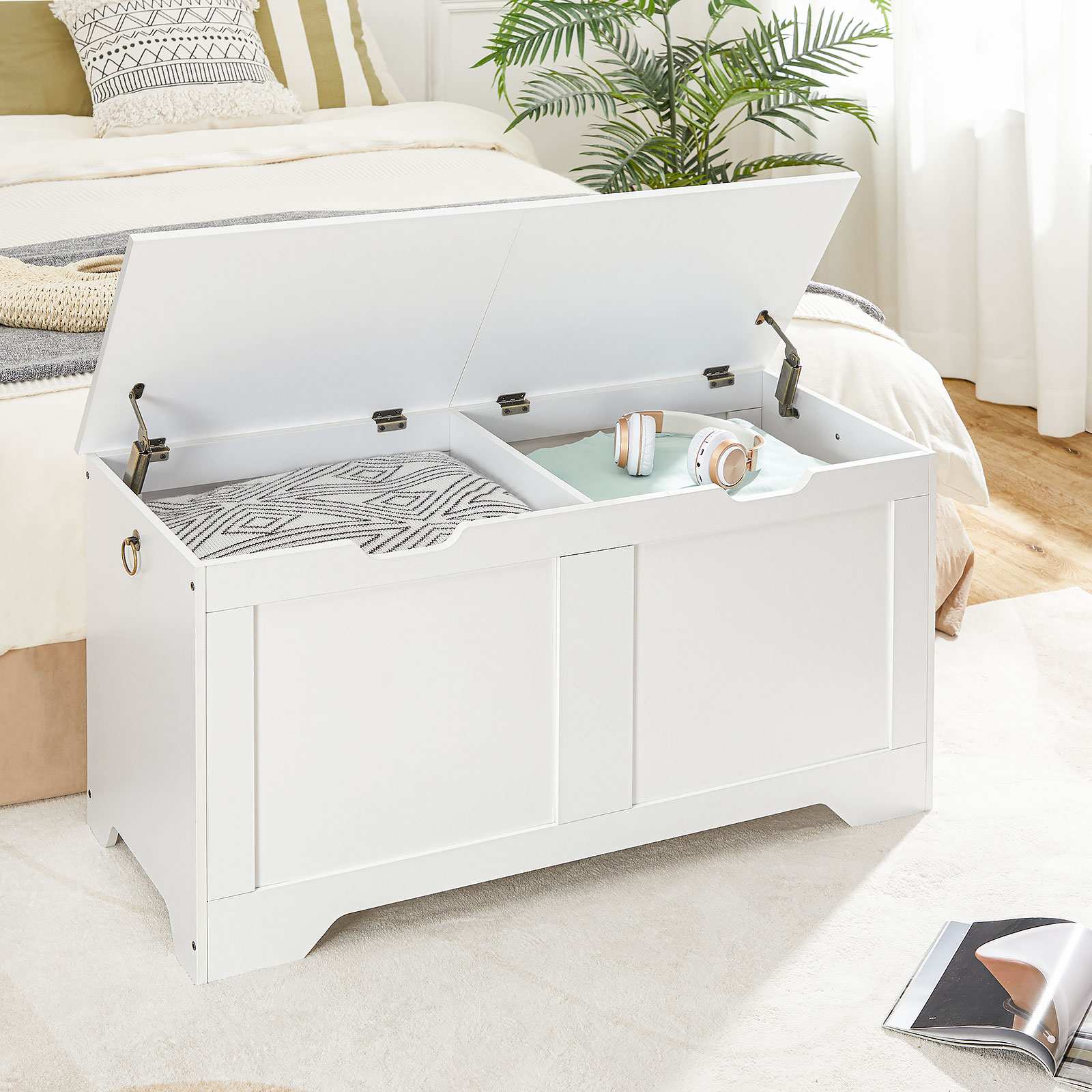 Cassetta portaoggetti bianca a doppio coperchio & Panca per scarpe, Scatola porta giocattoli multifunzionale con divisorio interno regolabile, Adatto per ingresso, Soggiorno e camera da letto