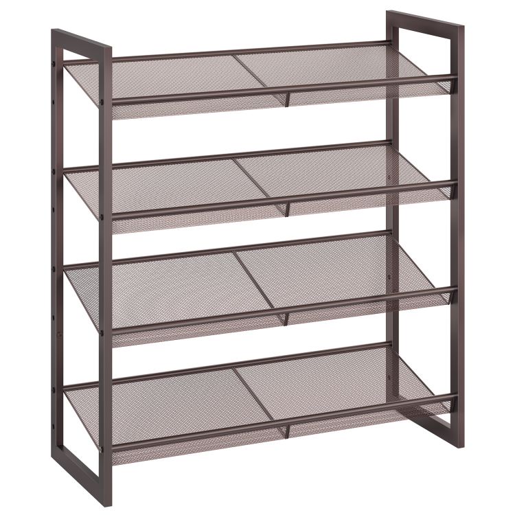 metalen schoenenrek, 4 Laagschoenrek voor kast, in bezit 12-16 paren schoenen, 29.5" W X 11.6" D X 31.5" H, stapelbaar, Voor ingang, gang, living room bronze ab82xj01