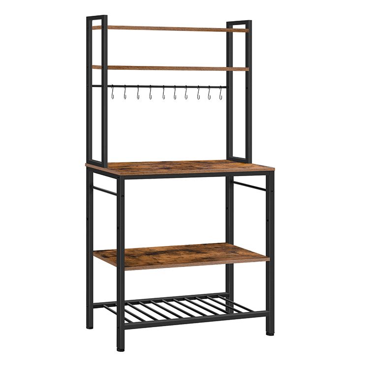 ovenrek met 10 haken, Keukenopslagplankrek met verstelbare bodemplank, 5 Tier Baker's Rack met kruispunten, grote capaciteit, voor magnetron, rustiek bruin