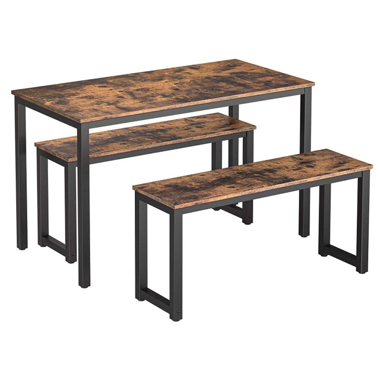 eettafel set rechthoekige keukentafel met 2 banken voor 4 Personen stevige metalen planken gemakkelijk montage industrieel ontwerp eetkamer keuken donkerbruin