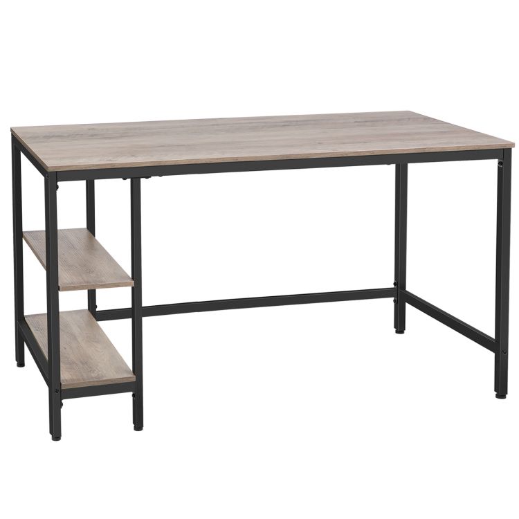 computerbureau, 55 inch schrijfbureau met verstelbare plank aan de linkerkant of rechts, Office Study Desk voor laptop, stevig metalen frame, voor thuiskantoor, eenvoudig te monteren, grijs en zwart
