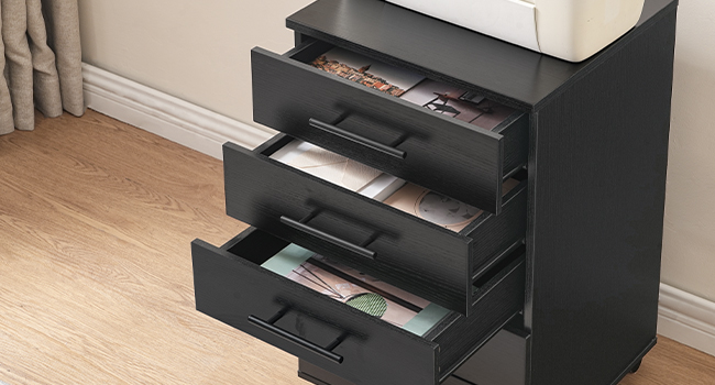 - Stevig en stabiel materiaal: Dit onder bureaustabiel is gemaakt van hoogwaardige spaanplaat en MDF, met stabiele structuur en sterk draagvermogen, elke lade kan reiken 22 pond. De brede bovenkant houdt vast 50 pond, waardoor het ideaal is voor het opbergen van voorwerpen zoals een printer of potplanten