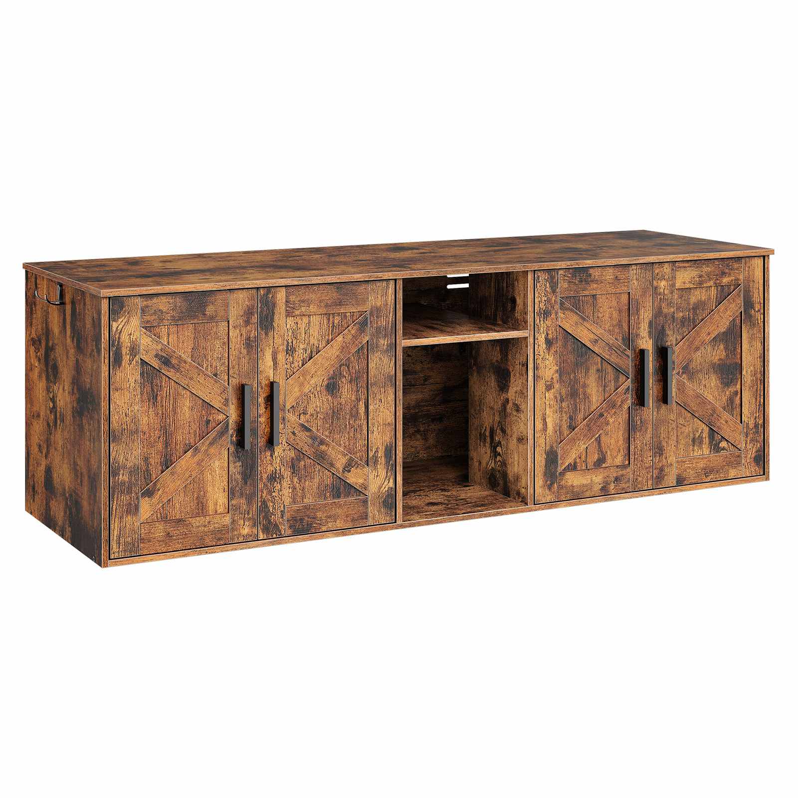 Dubbele kattenbakbehuizing, Verborgen kattenbakkast met gang, Multifunctioneel kattenbakmeubel met opberglaag en haken, Houten structuur, Rustiek bruin