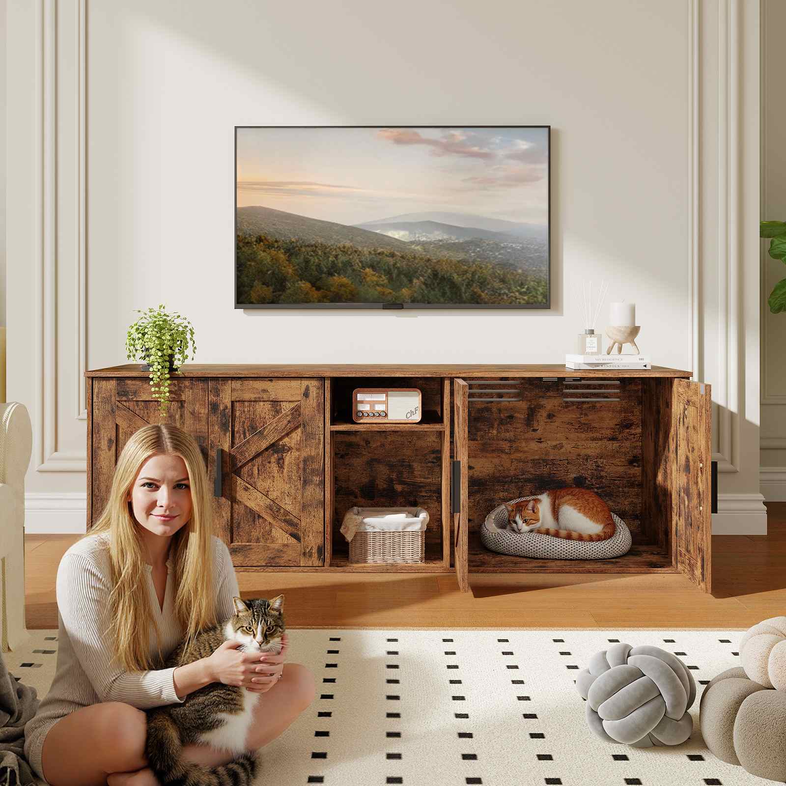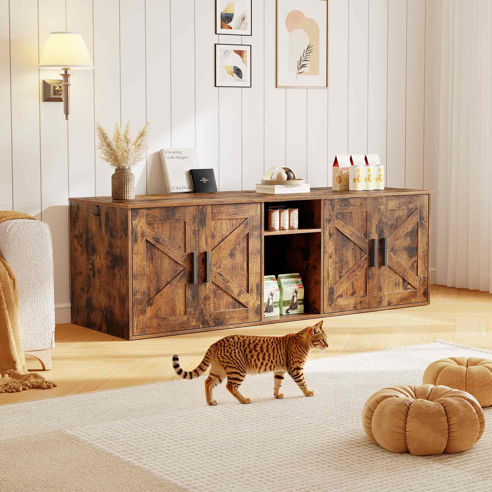 De HOOBRO kattenbakbehuizing is een multifunctioneel stuk dat de bruikbaarheid en uitstraling van uw huis naar een hoger niveau tilt, het harmoniseren van het leven van huisdieren met het gezinsleven.