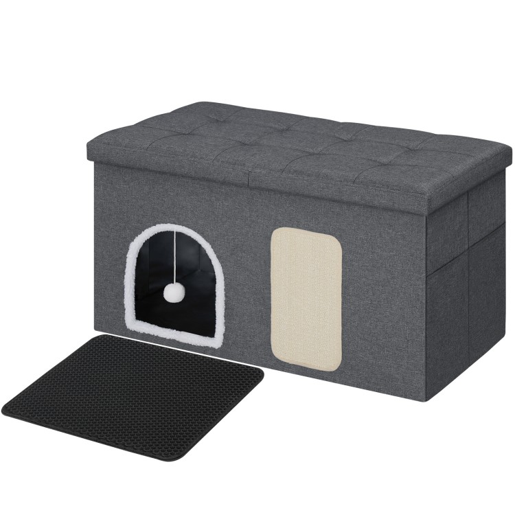 Kattenbakbehuizing, 35.4" Verborgen kattenbakbehuizing, Kattenbakmeubel met kattenmat, Inclusief krabplank en kattenspeeltje, Waterdicht, Eenvoudige montage, Grijs