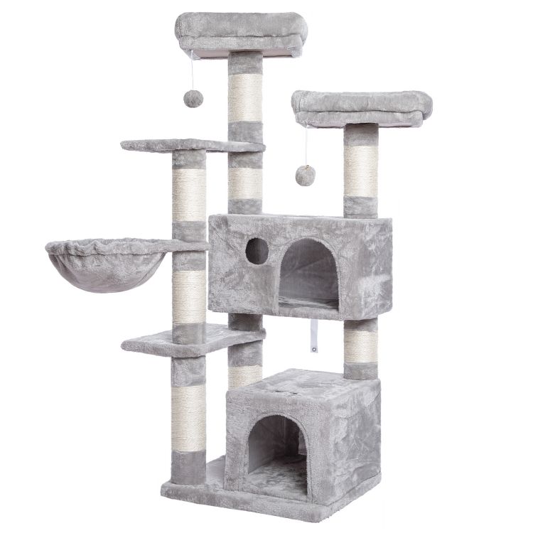 als uw kat energiek is, met scherpe klauwen, en houdt ervan om overal te liggen en te spelen, Aarzel dan niet. Deze kattenboom is geschikt voor katten van meerdere leeftijden. het heeft een gewatteerd uitkijkplatform en een ruime privéruimte, die uw kat meer plezier bezorgen.