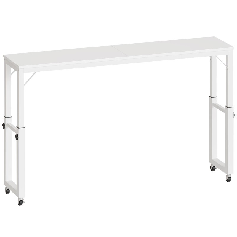 Witte overbedde tafel met wielen, Queen size mobiele beddenbureau met verstelbare hoogte, Rollend tafel, Eettafel, Computer tafel, voor de slaapkamer, Woonkamer, Kantoor