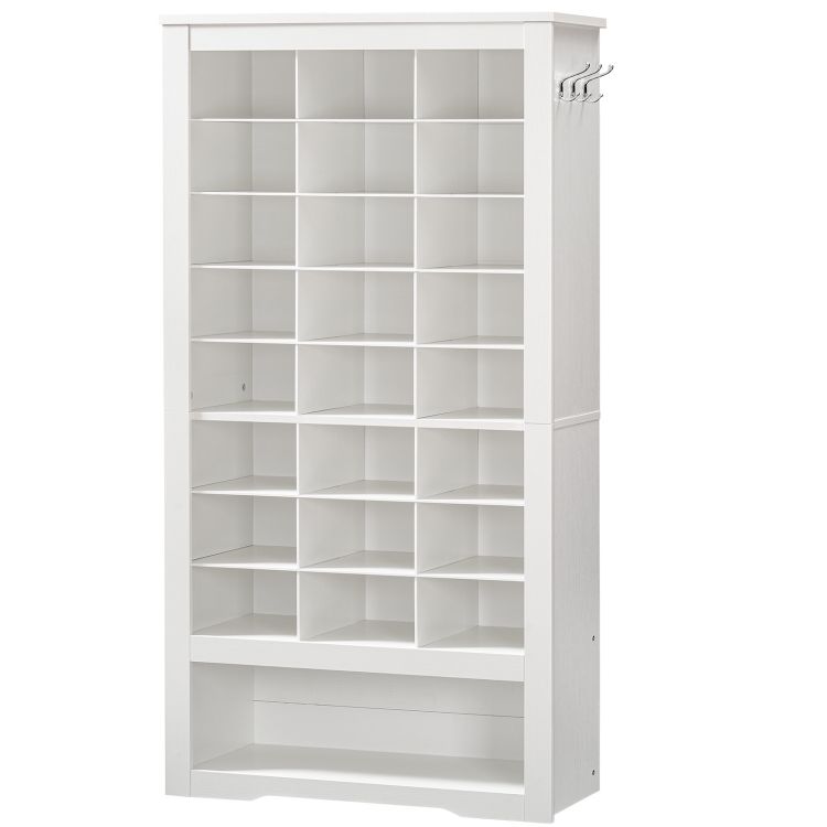 Witte lange schoenkast, 9 Opbergkast voor schoenen, Vrijstaande houten schoenenkast organisator met 24 Cubbies en 3 Haken, voor Ingang, Kast, Woonkamer