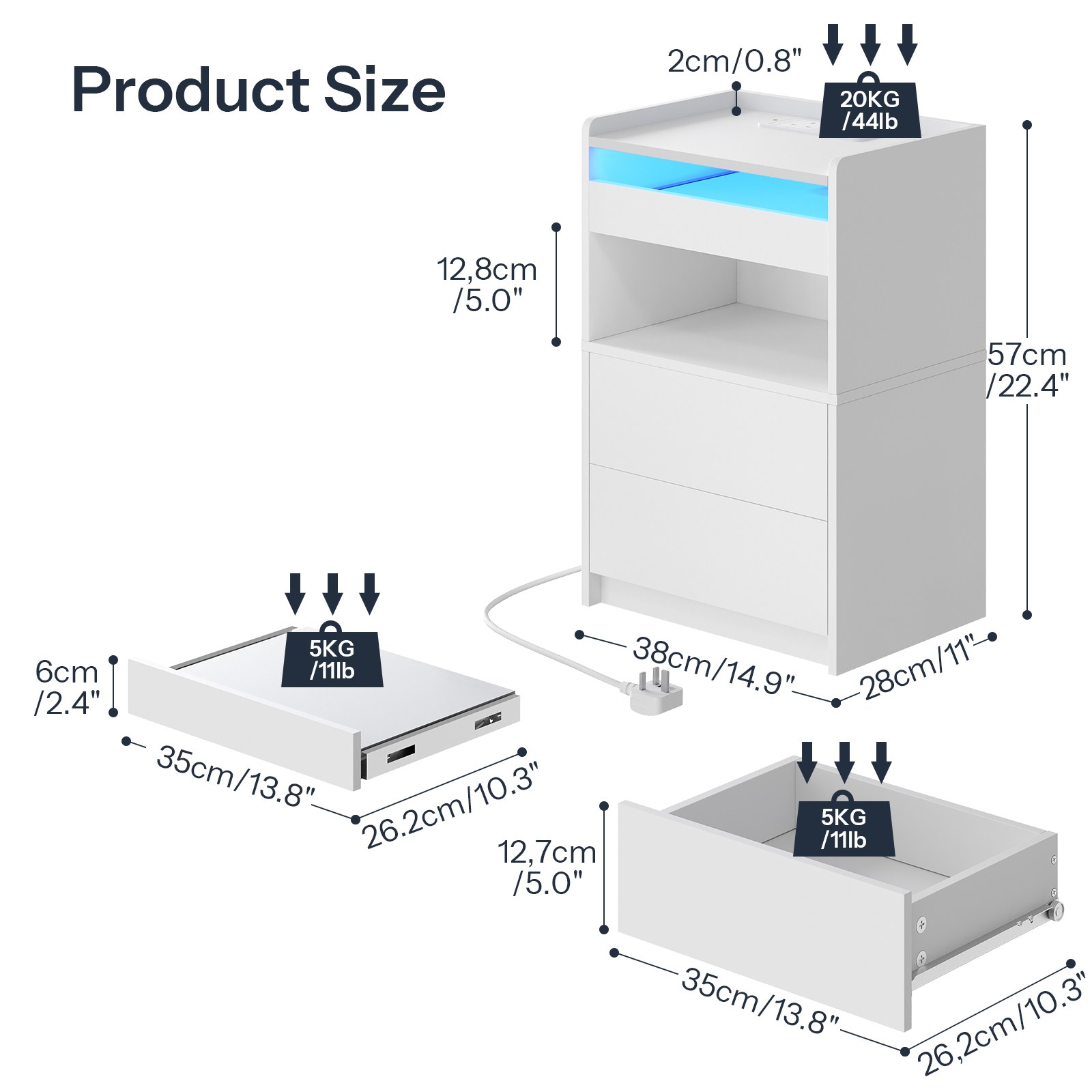 - Oplaad hub: Uitgerust met 1 standaard stopcontact en 2 USB-A-poorten, Het nachtkastje biedt kracht voor smartphones, laptops, en andere elektrische apparaten. Of het nu wordt gebruikt als een eindtafel of nachtkastje, Het elimineert zorgen met lage batterij