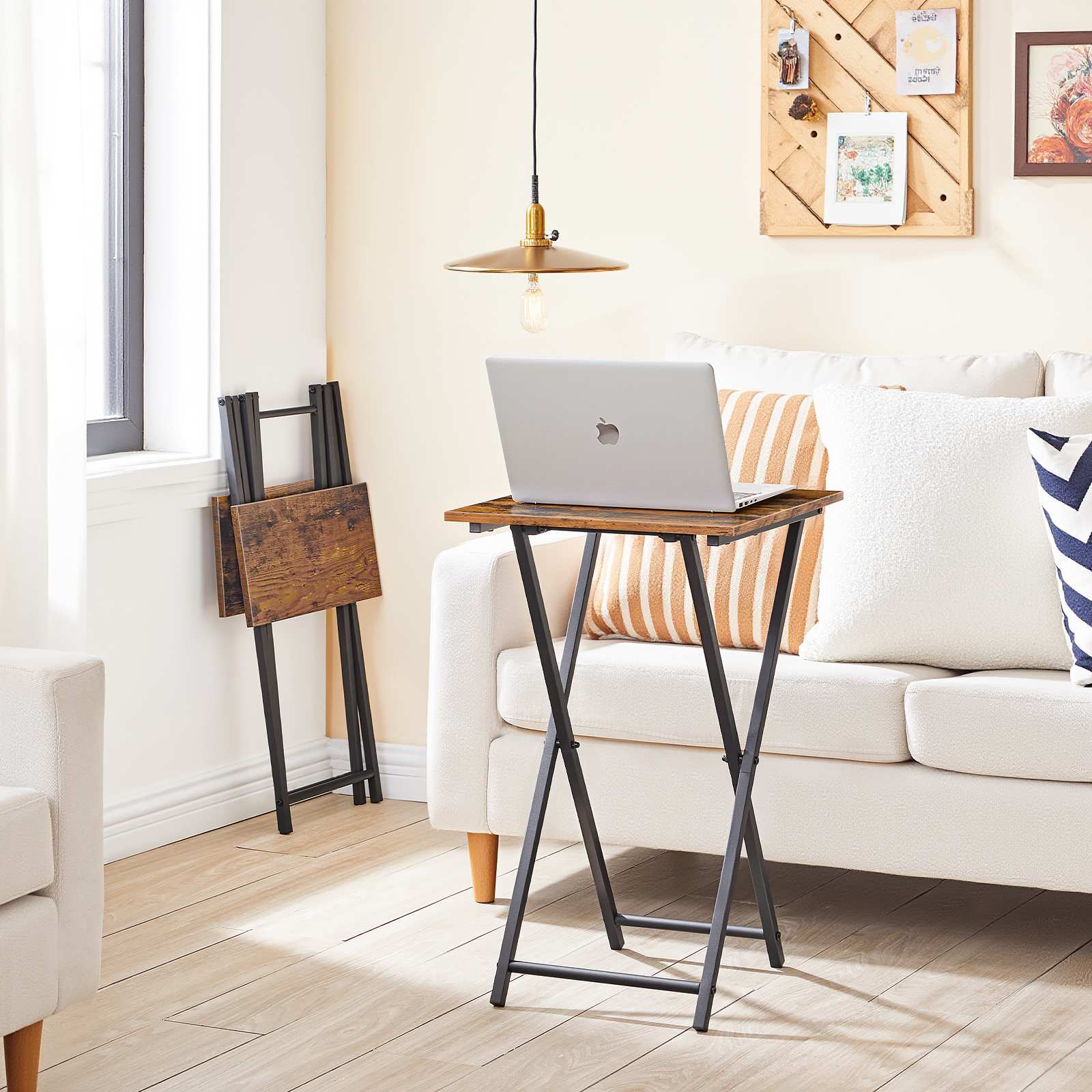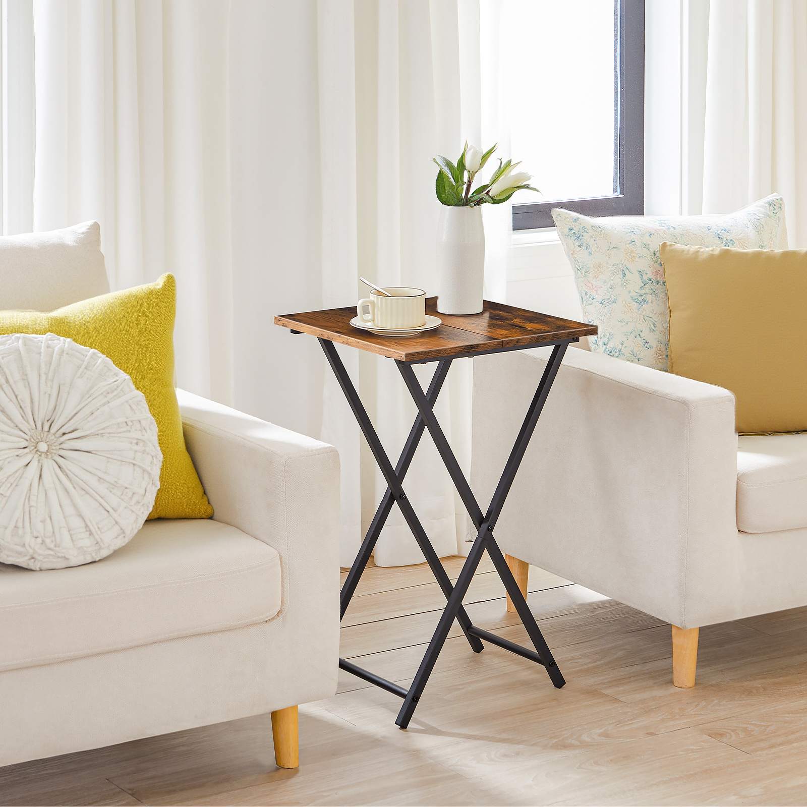 Sammenleggbart TV-brettbord, Rustikk brun & Svart bærbart sidebord av tre, Industrielt snackbord for små rom, Plassbesparende, Enkel montering & Folding