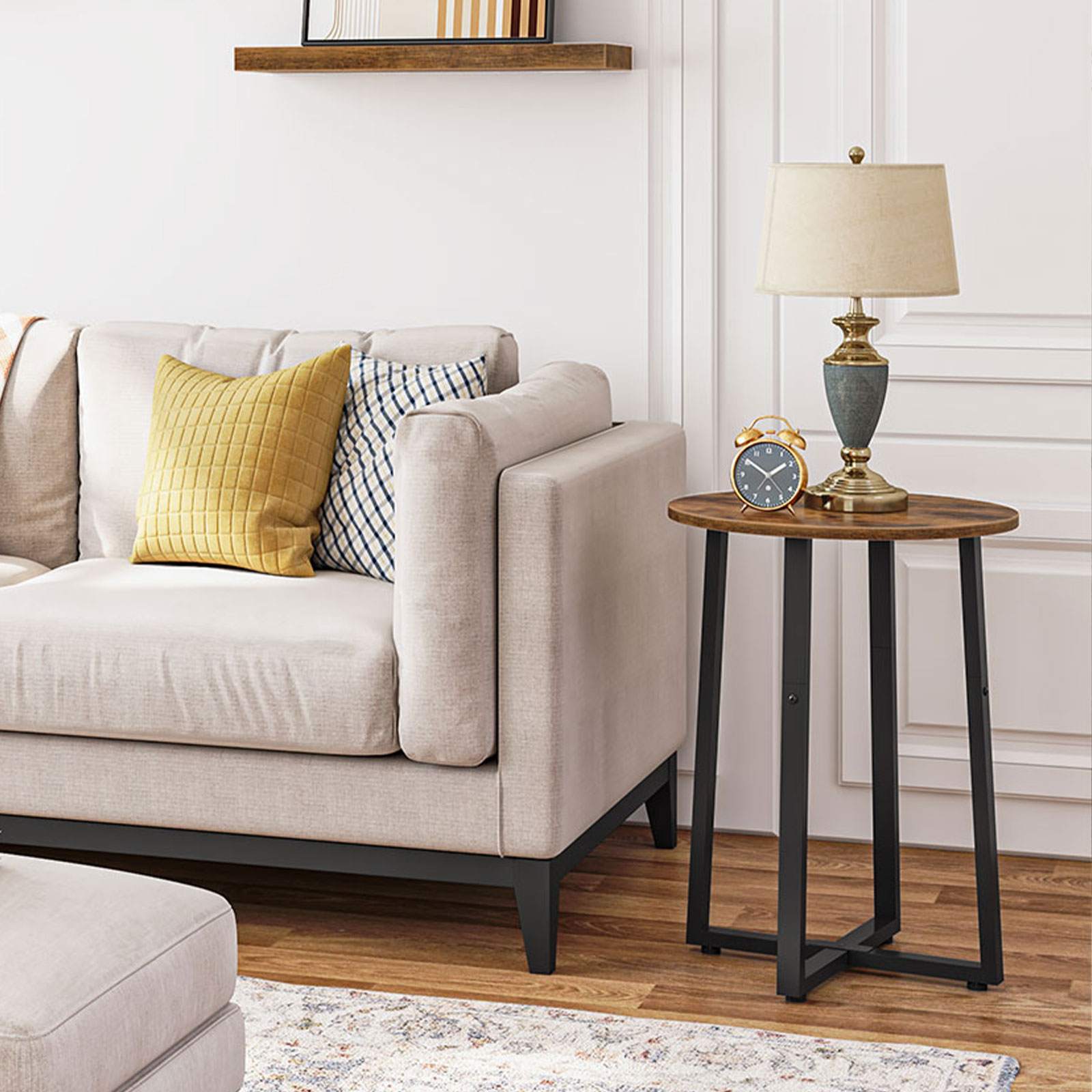 Optimal Compact Size: With dimensions of 40cm (L) x 40cm (W) x 55 cm (H), the compact structure allows the round side table to fit in narrow spaces without compromising its storage performance. The compact size and rustic color scheme endow the room with a classic and elegant rustic atmosphere.