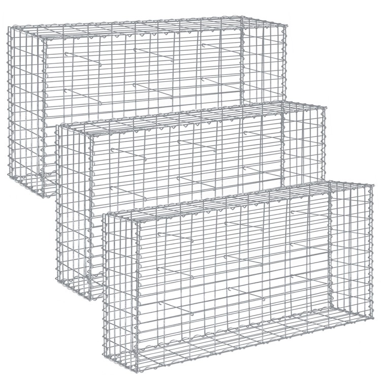 - Robust og holdbar gabionen er laget av varmgalvanisert jerntråd som ikke er lett å ruste, solid og korrosjonsbestandig. Tråddiameteren er 3,5 mm for lang levetid. Fest avstandskrokene for å forbedre stabiliteten