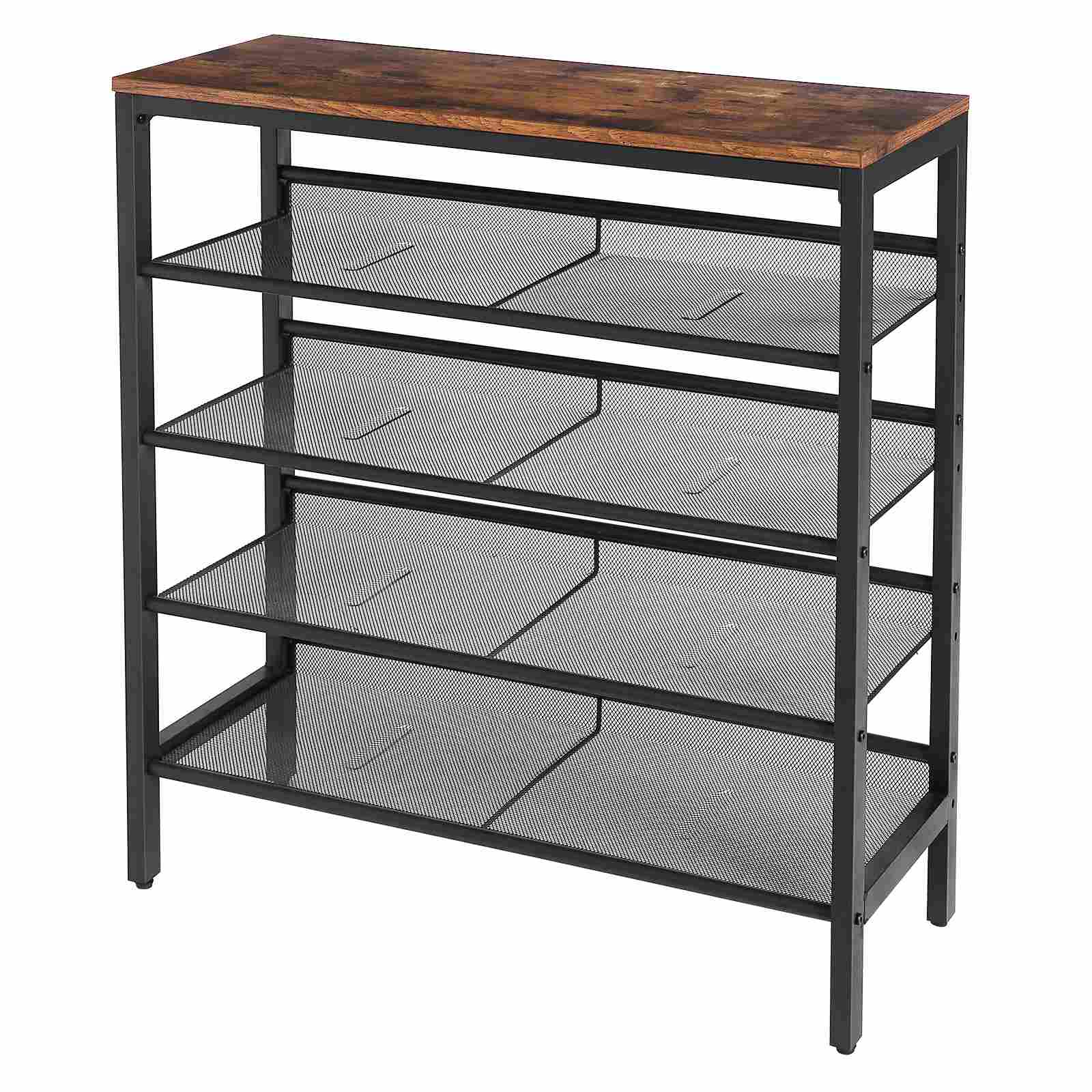 tani stojak na buty, 5-ZAWIETANIE BUTÓW WYNDU PŁATNE & Slant Regulowanego Organizatora Butów 16 pary, trwałe i stabilne, do wejścia, korytarz, gabinet, pokój w akademiku, przemysłowy, Rustykalny brąz