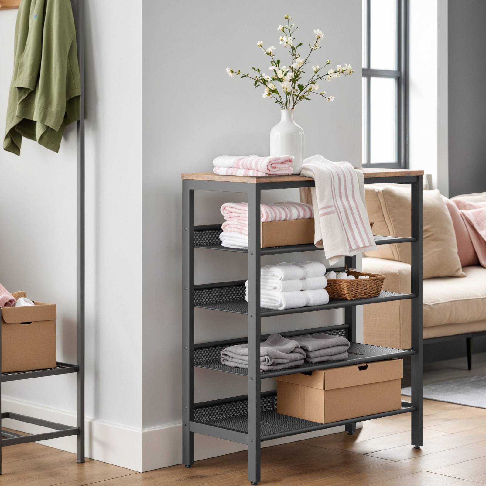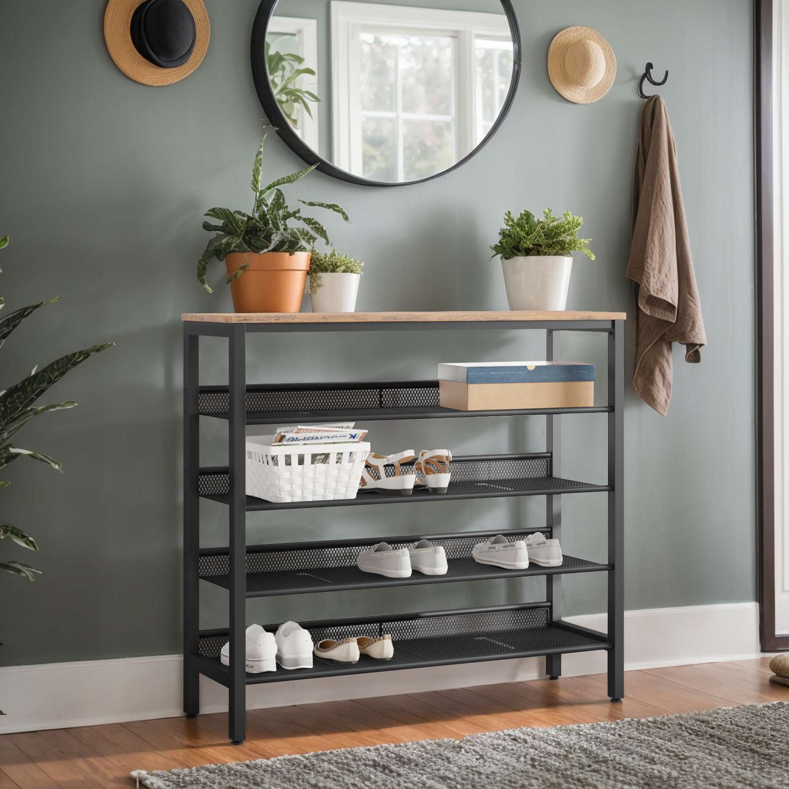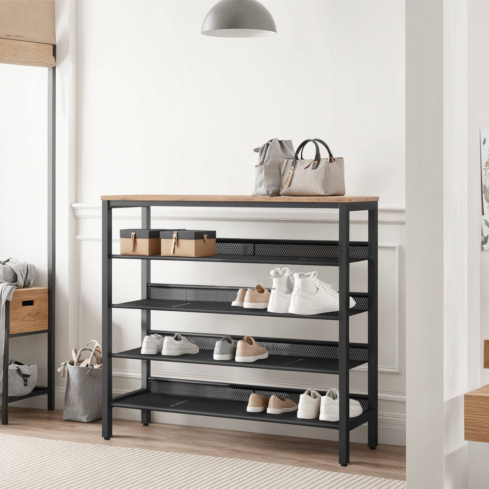 - dzieło sztuki: w chwili, gdy twoi przyjaciele weszli do twojego przedpokoju, będą pod wrażeniem tego atrakcyjnego 5 półka na buty wykonana z eleganckiej drewnianej deski w rustykalnym brązie i solidnej metalowej ramy. tak wygląda dzieło sztuki!