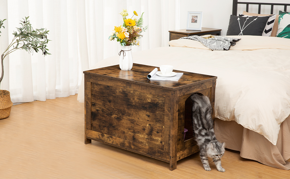 - wielofunkcyjny domek dla kota: a warm home for your cat? this cat litter tray comes with a spacious plate for magazines, Kwiaty, lampy itp. To może być nie tylko dom kotu, but also a chest and bench. matches the home decoration to give a more life-like feeling.