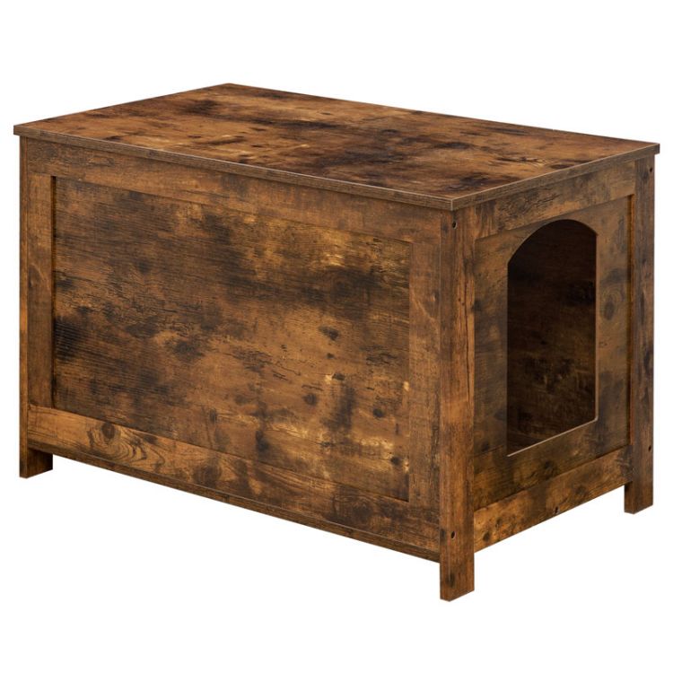 obudowa kuwety, Ukryte meble z kuwety, Odwróć górną ławkę do przechowywania, z dzielnikem powiększając dom nocny dla grubego kota, Rustykalny brąz