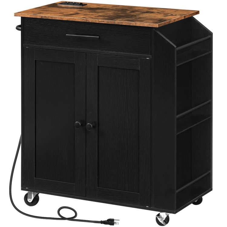 Wyspa kuchenna z ujściem elektrycznym, Wyspa magazynowa kuchenna z stojakiem na przyprawy i szufladę, Rolling Kitchen wózek na kółkach, do domu, kuchnia i jadalnia, rustykalny brąz i czarny