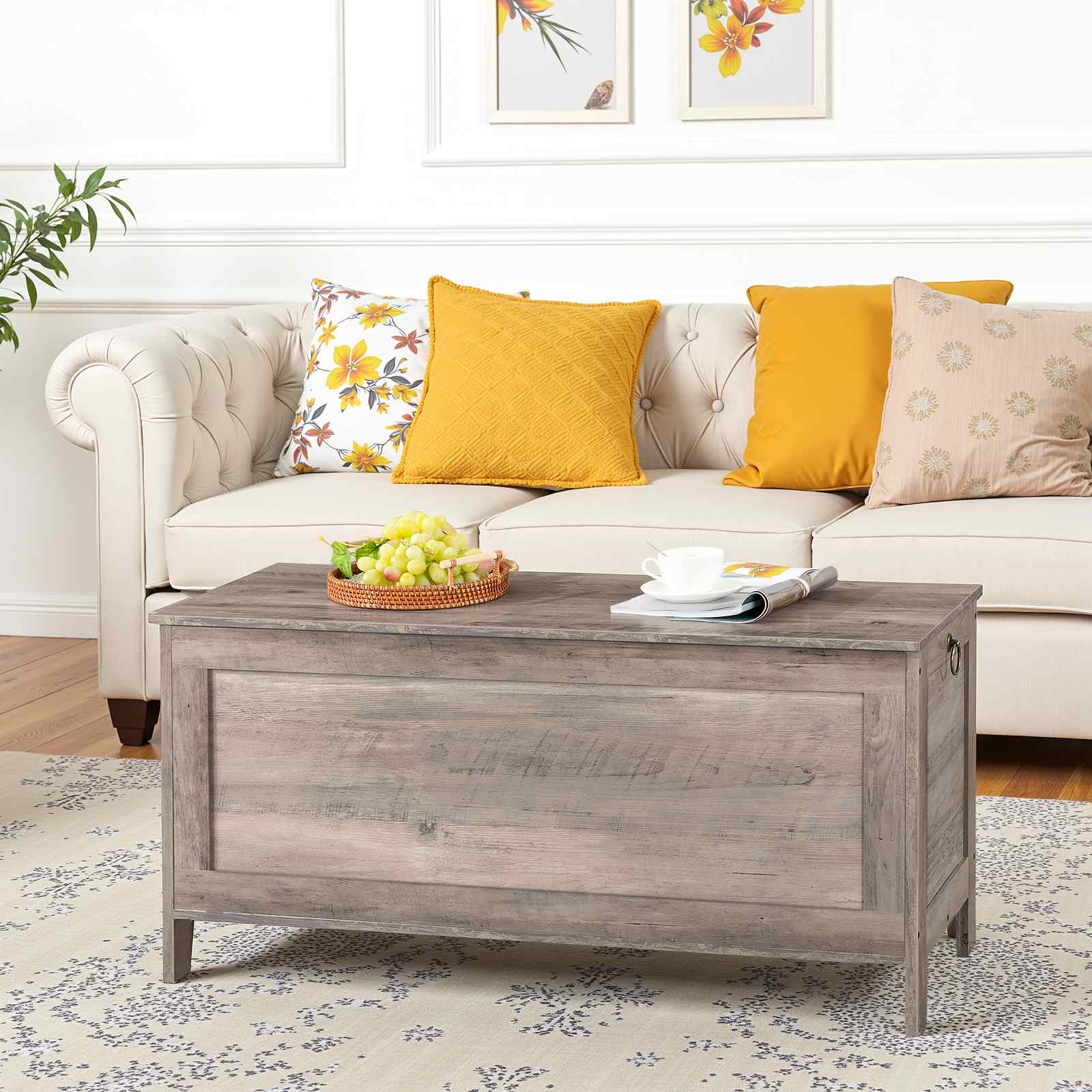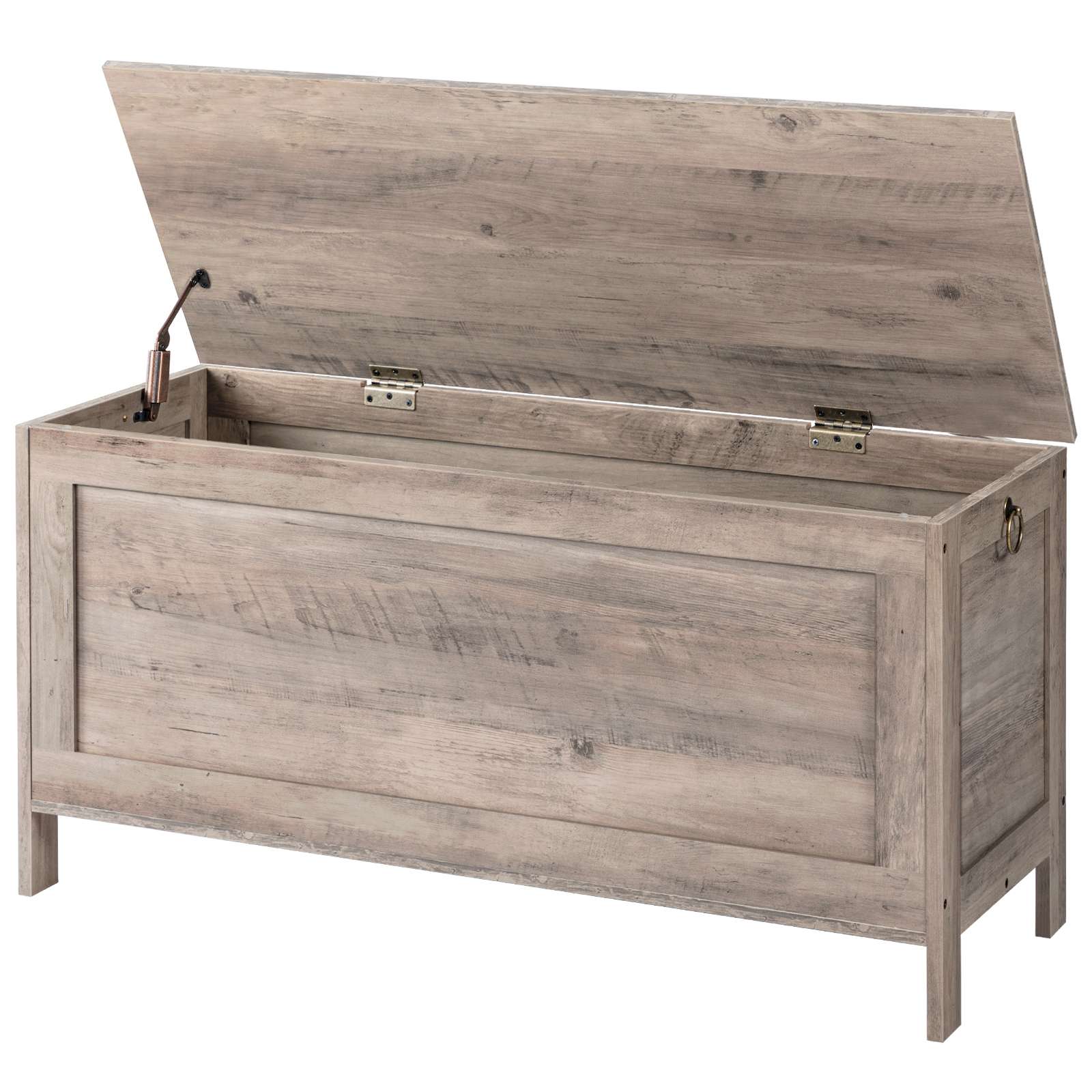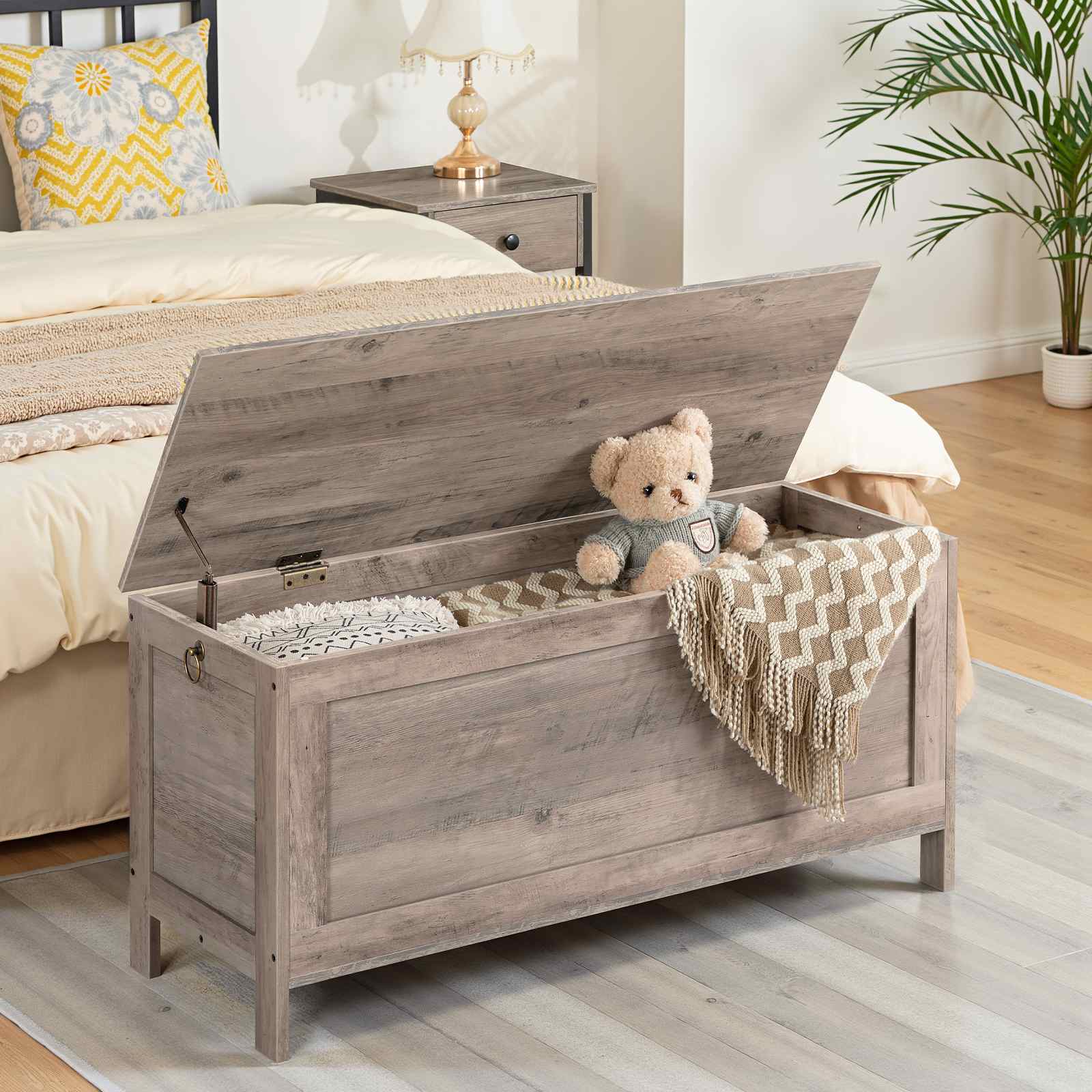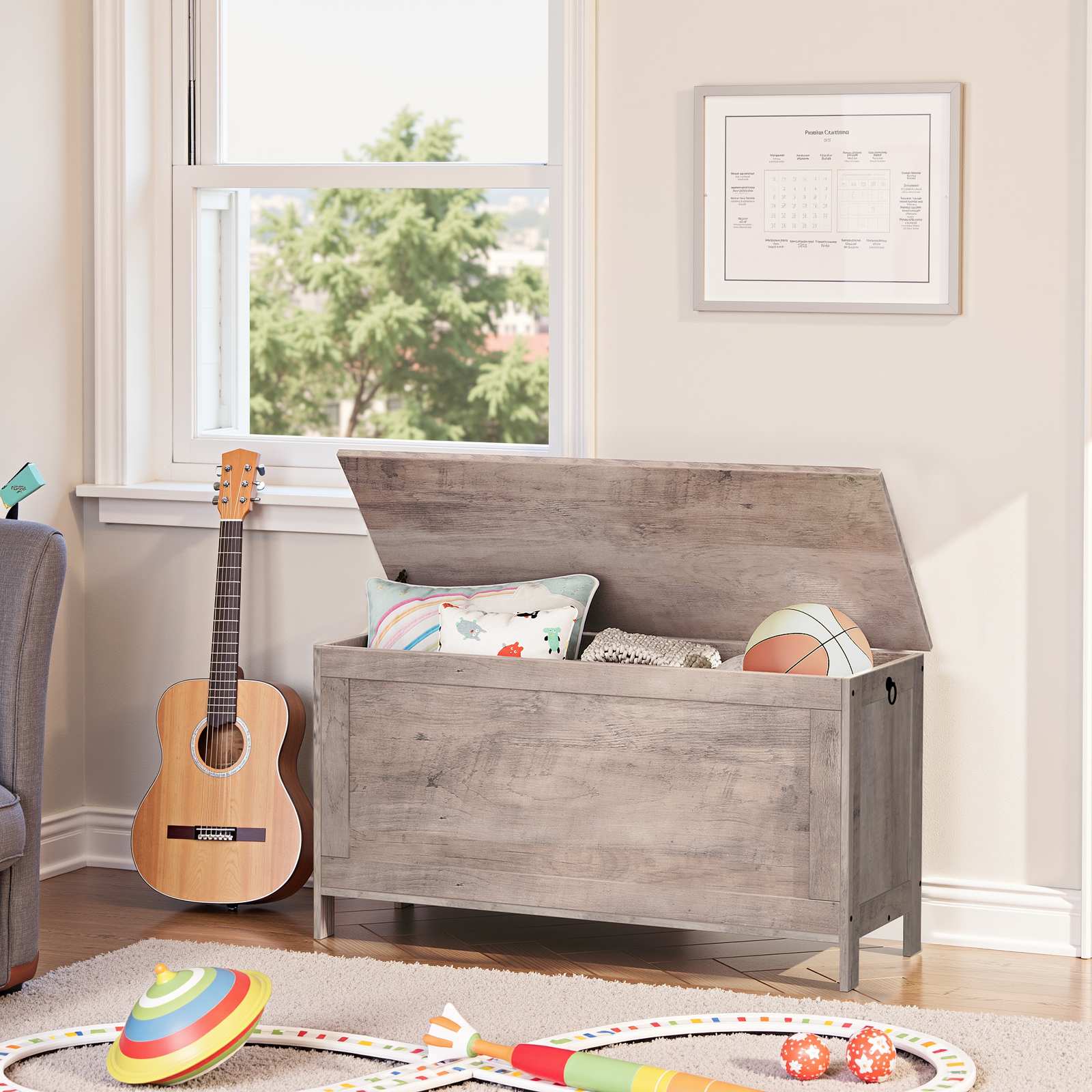 Retro Grey Storage Chest with Safety Hinge, Solidna ławka do przechowywania w przedpokoju, Wooden-Look Accent Furniture, Easy-Assembly Toy Box Organizer