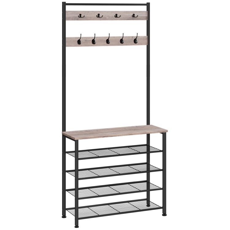 Drzewo Hallowe, Wieszak na ubrania z wieszakiem na buty, Drzewo Hall z ławką, 5 Tierowy organizer do przechowywania butów z 9 Haki do przedpokoju, Gabinet, Silny, Przemysłowy, Szary i czarny