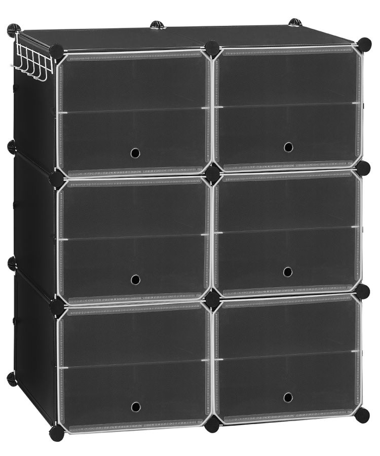 Organizator obuwia, 6 stojak na buty z drzwiami, trzyma 24 pary butów, Szafka do przechowywania buta do szafy, Rama stalowa, Panel z tworzywa sztucznego, Łatwy w montażu, do wejścia, korytarz, czarny