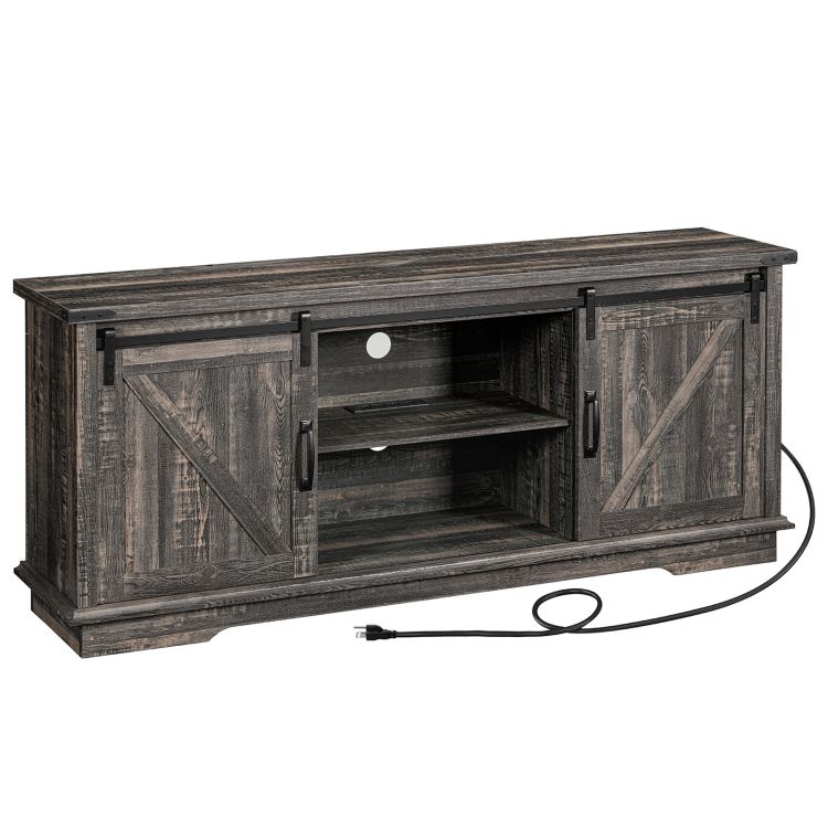 stojak na telewizję wiejską z punktami energetycznymi 75 cale, Nowoczesne centrum rozrywki z przesuwnymi drzwiami stodoły i szafkami do przechowywania, Media TV Console Table do salonu, vintage gray fp167uds01