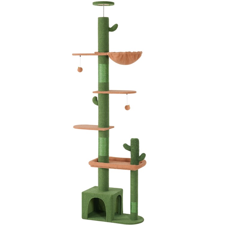 Drzewo kota podłoga do sufitu, Wieża Kaktusowego Kota, Wysoki drapak dla kota z możliwością regulacji wysokości (94-110 Cale), 5 Drzewko wspinaczkowe Tiers dla kotów domowych z mieszkaniem dla kota, Wiosenna zieleń i ziemisty brąz JR90CT03